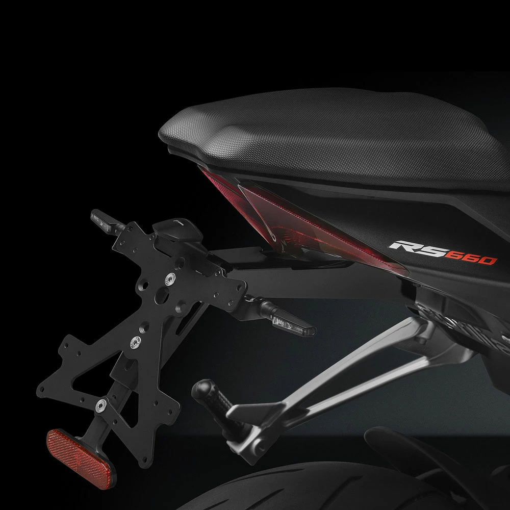 Rizoma license plate support kit PT801B Aprilia Rs600 is made from billet aluminum and allows the complete redesign of the rear end. Minimalist design and premium materials ensure optimal structural performance and high visual impact. Easily assembled, as each has been specifically designed for the corresponding motorcycle model. Sold individually, the specific Rizoma license plate that meets the legal size requirement in your country is additionally required.