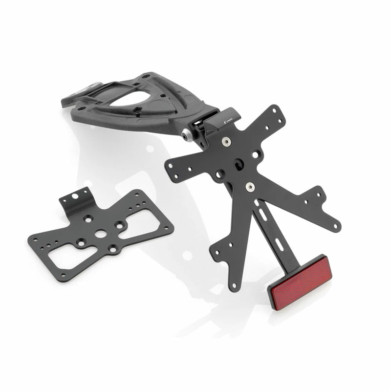 Pursuant to the European Standards. Machined from billet aluminum. E-Homologated LED SMD License Light. Designed for easy and fast installation. Lightweight and functional. Each kit includes a USA size plate holder.
