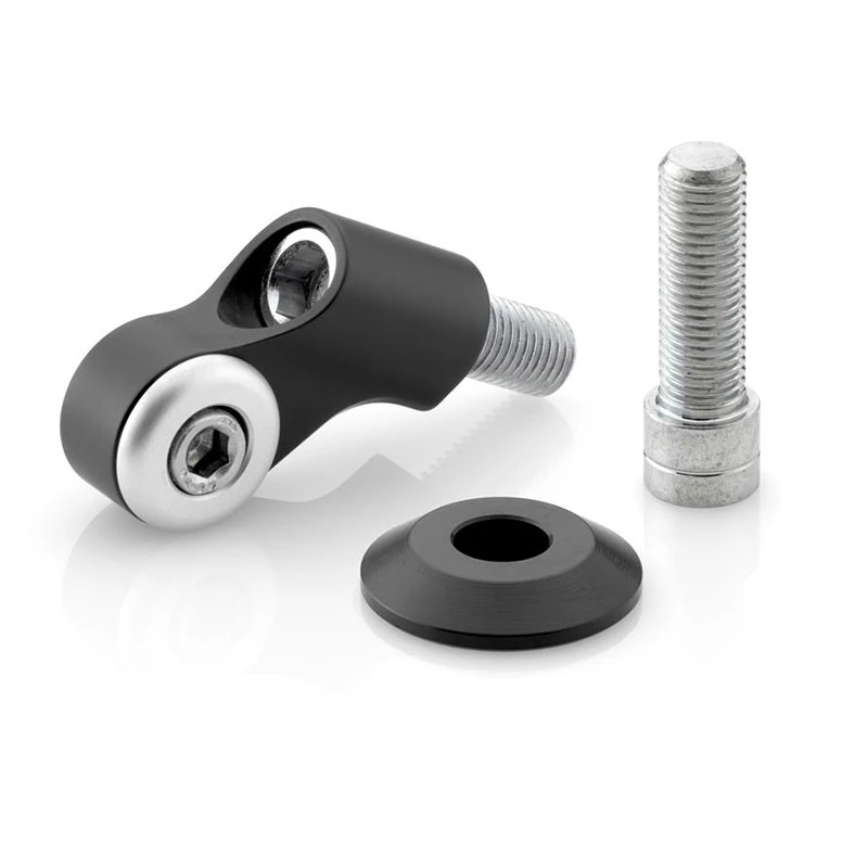 Each specific mirror adapter is specially made for the corresponding motorcycle model to ensure the best possible fit on the handlebar. To ensure continuity of design, the adapter matches the lines of the mirror, combining practicality and comfort without compromising on looks. Made from billet aluminum for long-lasting strength.