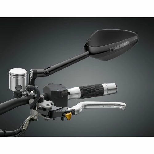 Integrated Light: a good solution to replace the mirror on sports bikes, and a racing touch as an alternative on a naked. Large reflective surface, to comply with European standards and convex glass: two precious features that ensure optimum visibility in all conditions. The aerodynamic shape helps to prevent turbulence at speed. The use of two different materials provides an eye catching design and the Veloce L, reduces weight significantly.