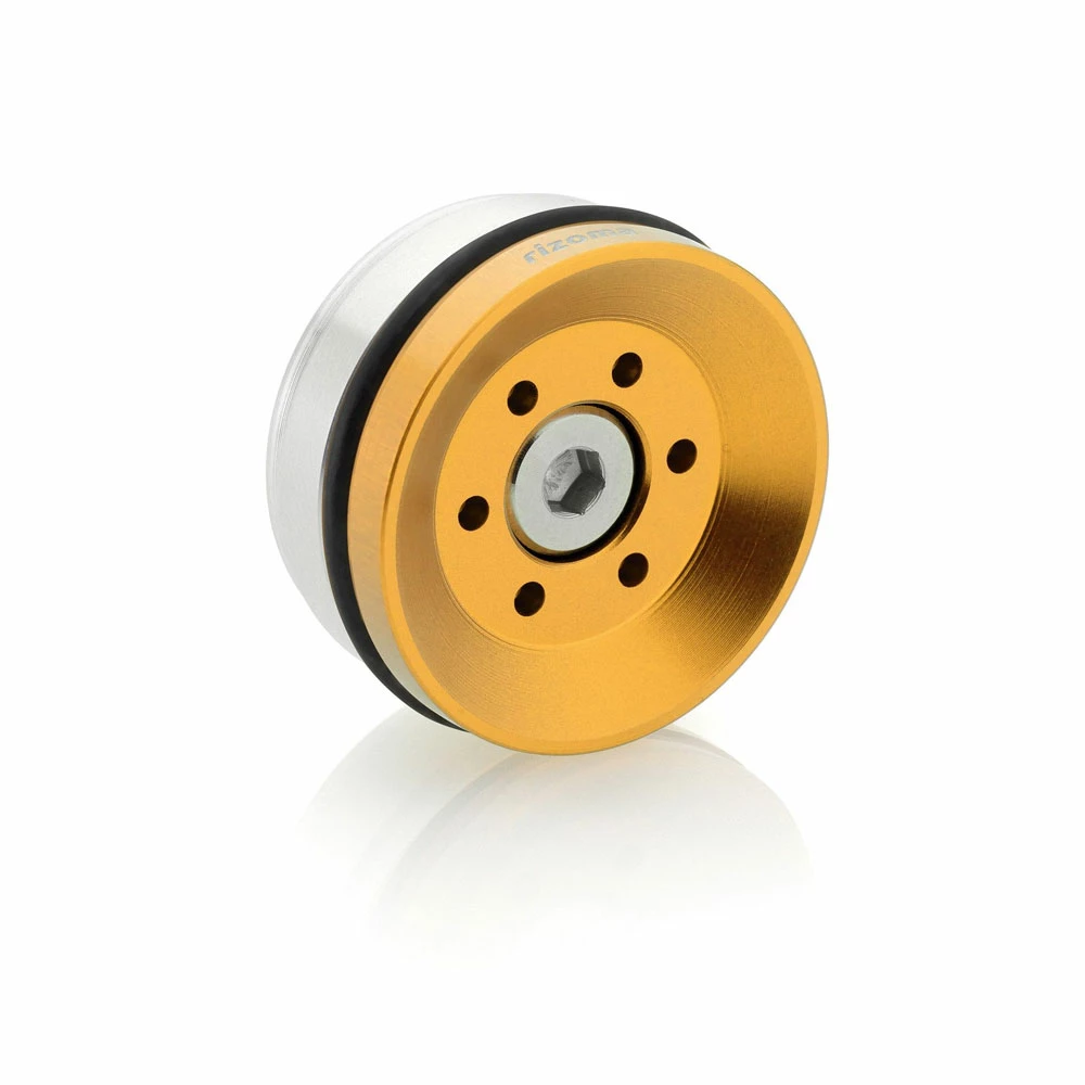 The Rizoma frame plug kit contains six pieces (2 x Γ 24 mm, 4 x Γ 33 mm) made from meticulously anodized aluminum to keep them looking good for longer. Available in various colors.