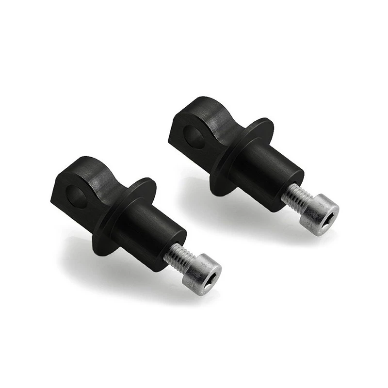 Pair of PE800B Rizoma touring-series adapters specific to BMW R1200 GS Adventure since 2014, R1200 GS since 2013, R1200 GS Rallye since 2013 and S1000 XR since 2015, all in a passenger position. With these adapters, you can apply the Touring Series Rizoma in the coloring you prefer. They are made of black anodized aluminum alloy and are designed to fit perfectly on your bike.