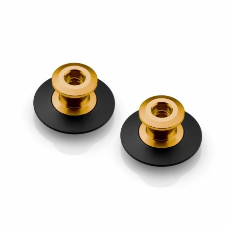 Designed to fit a wide range of makes and models, Rizoma swingarm spools are fitted with a quick mount system which can be used even in competition to raise the bike off the ground. Machined from billet aluminum for durability, uncompromising design adds a touch of style to any bike. These swingarm spools are sold as a pair and are M8 x 35mm. Available in Silver, Black, Gold, Red & Blue. Generally these spools will not work with single-sided swingarm bike models.